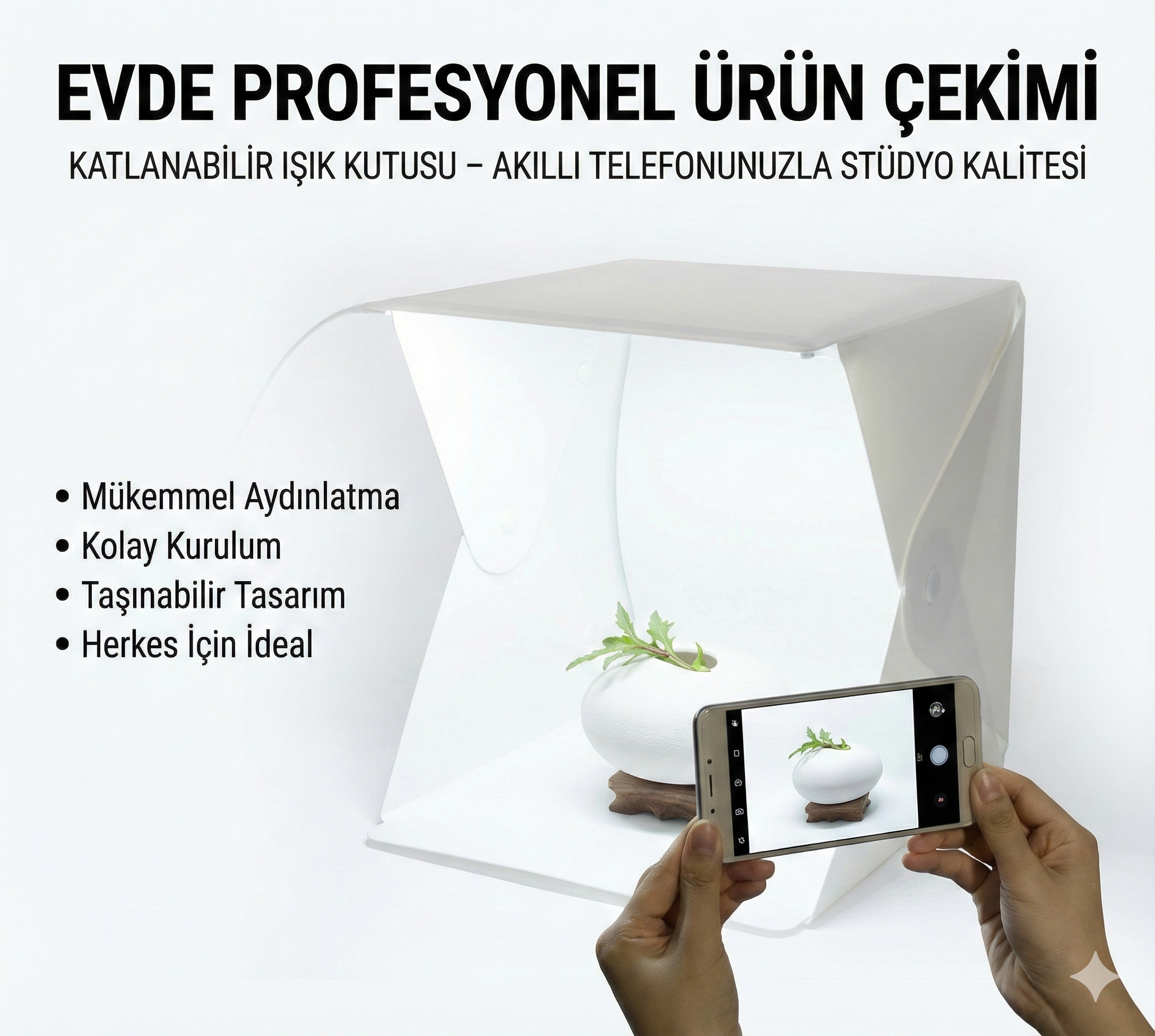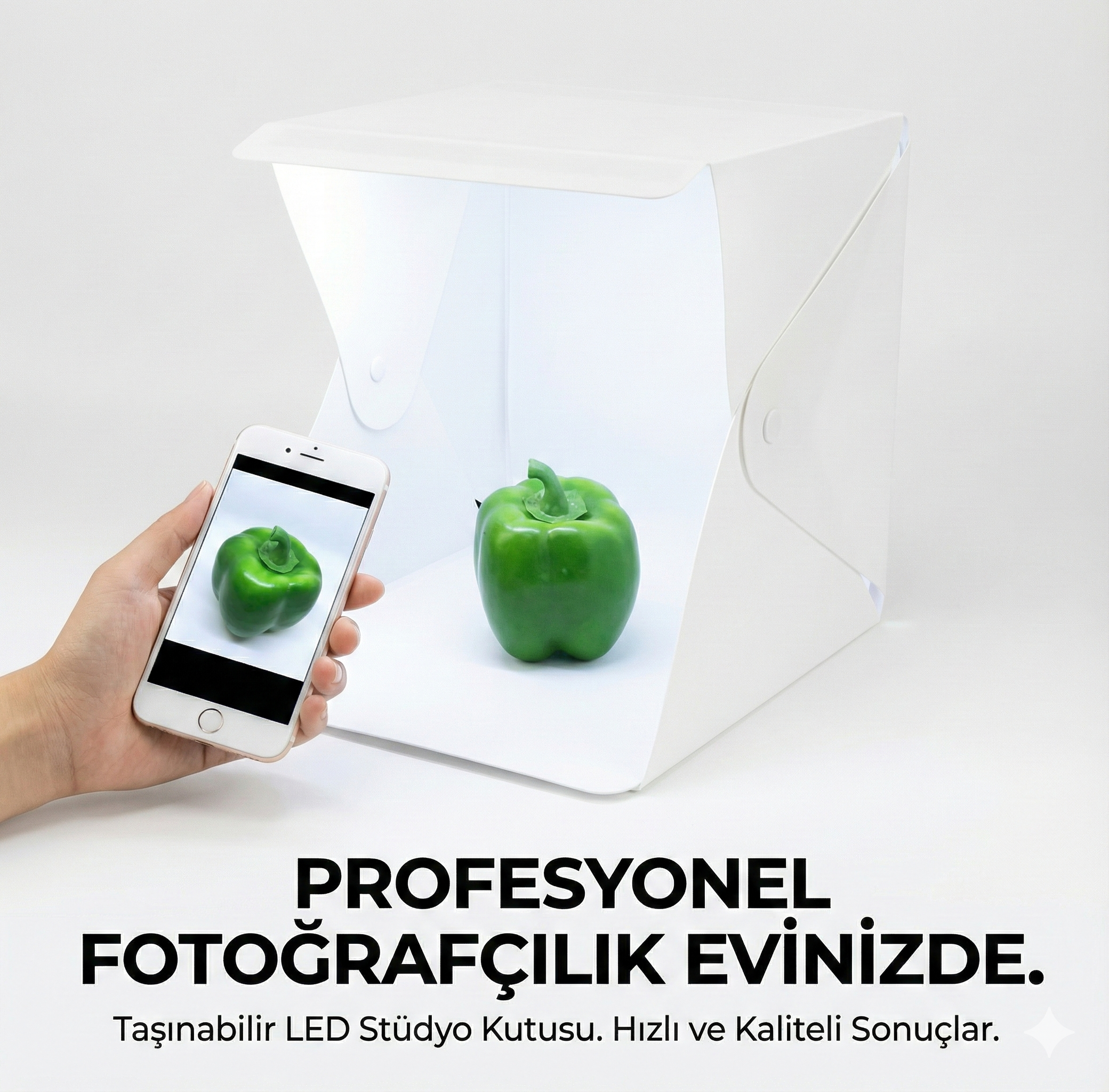 Takı, aksesuar, oyuncak, saat ve aklınıza gelen diğer nesneler gibi küçük ürünlerin hızlı ve kolay şekilde fotoğrafının çekilmesini sağlar.