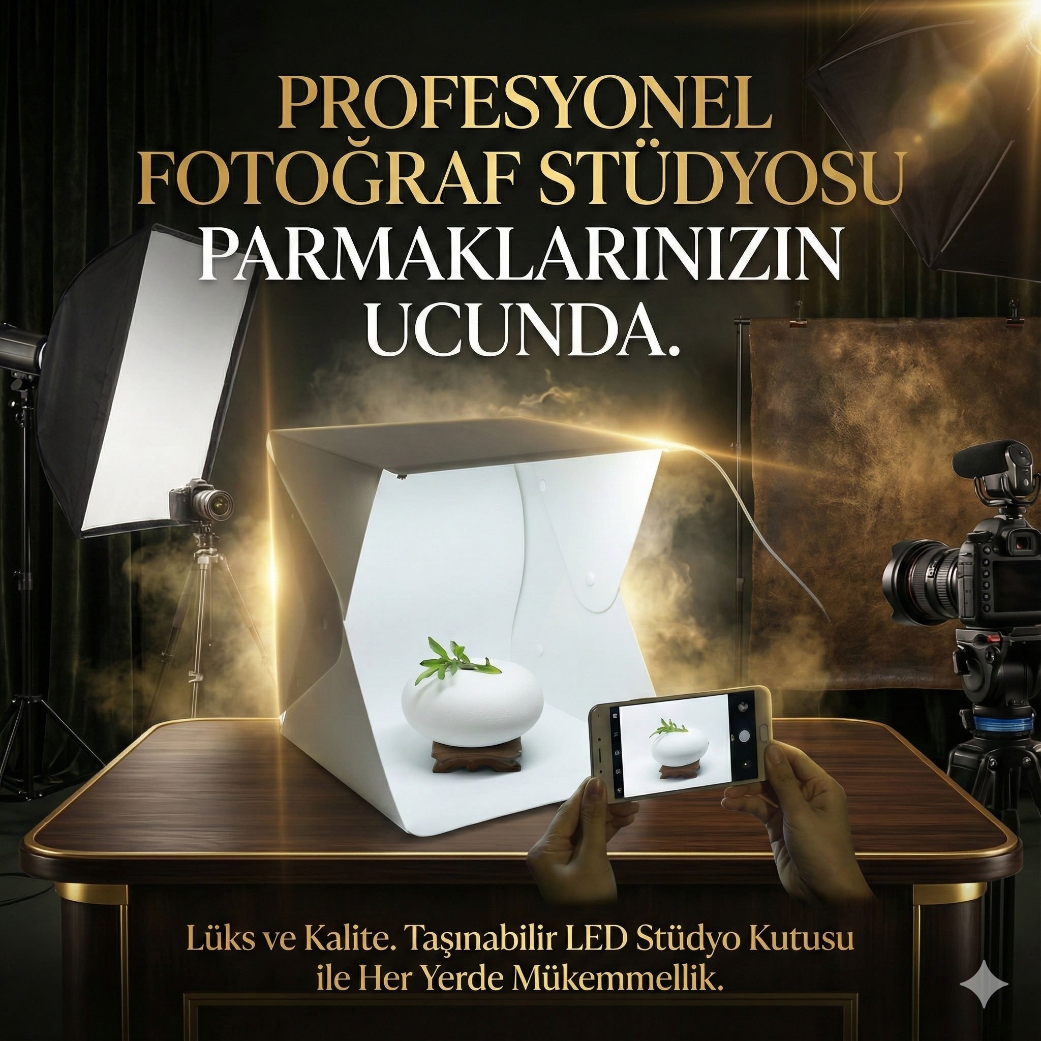 20 x 20 CM Profesyonel Stüdyo Led Işıklı Çift Sıra Ürün Fotoğraf Çekim Çadırı