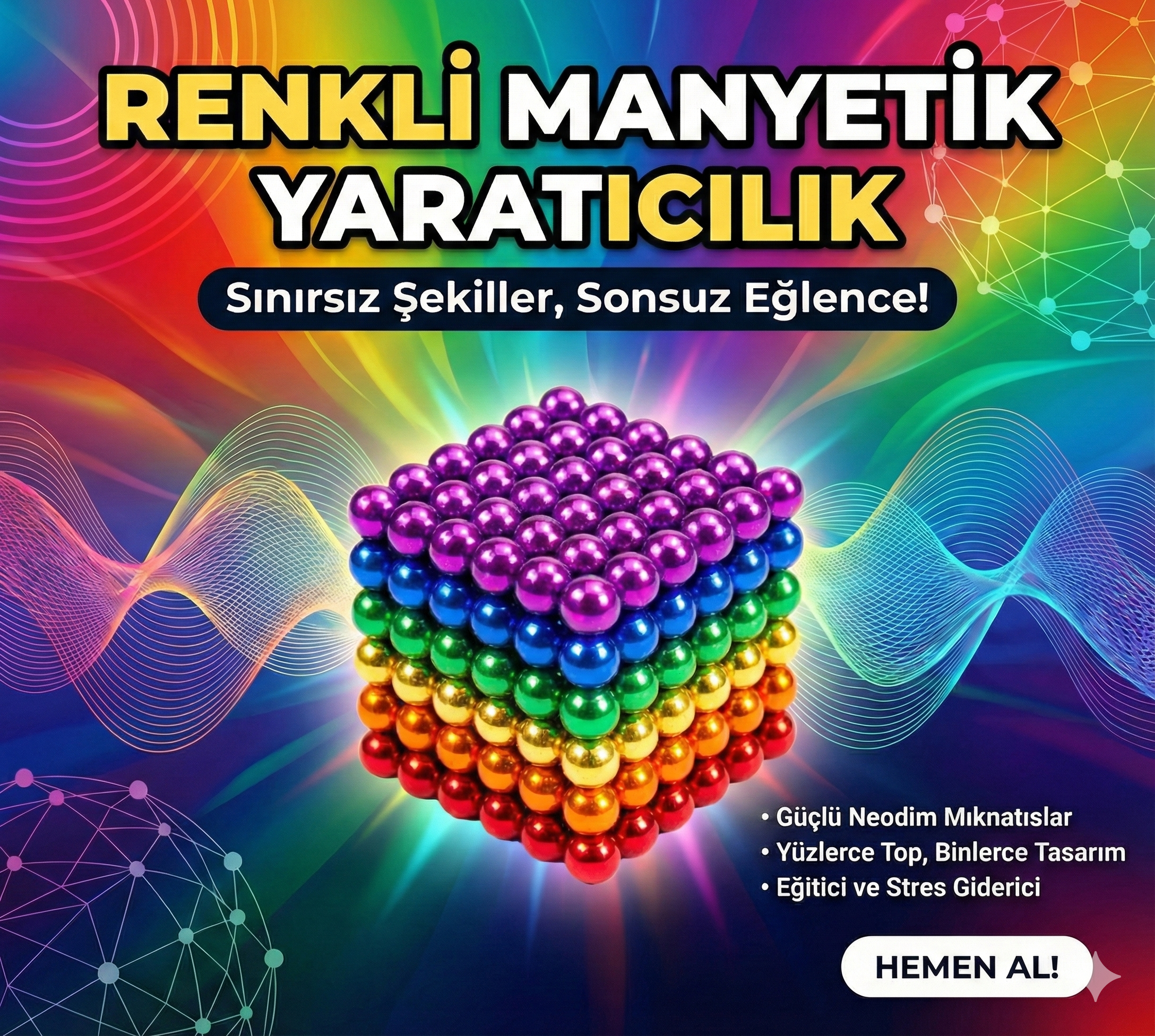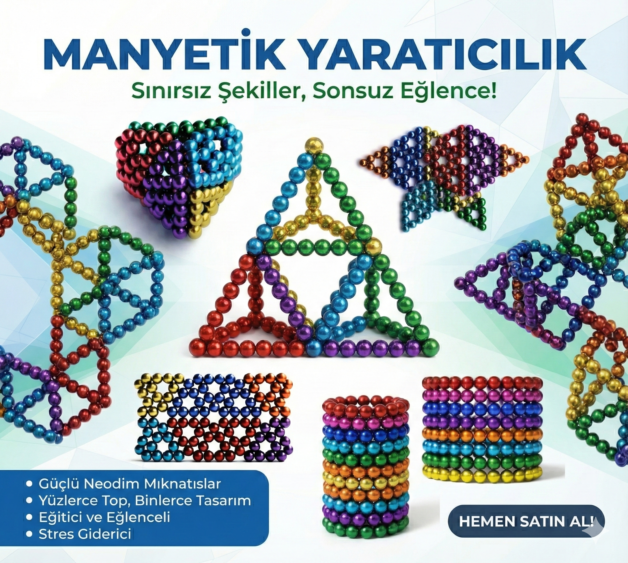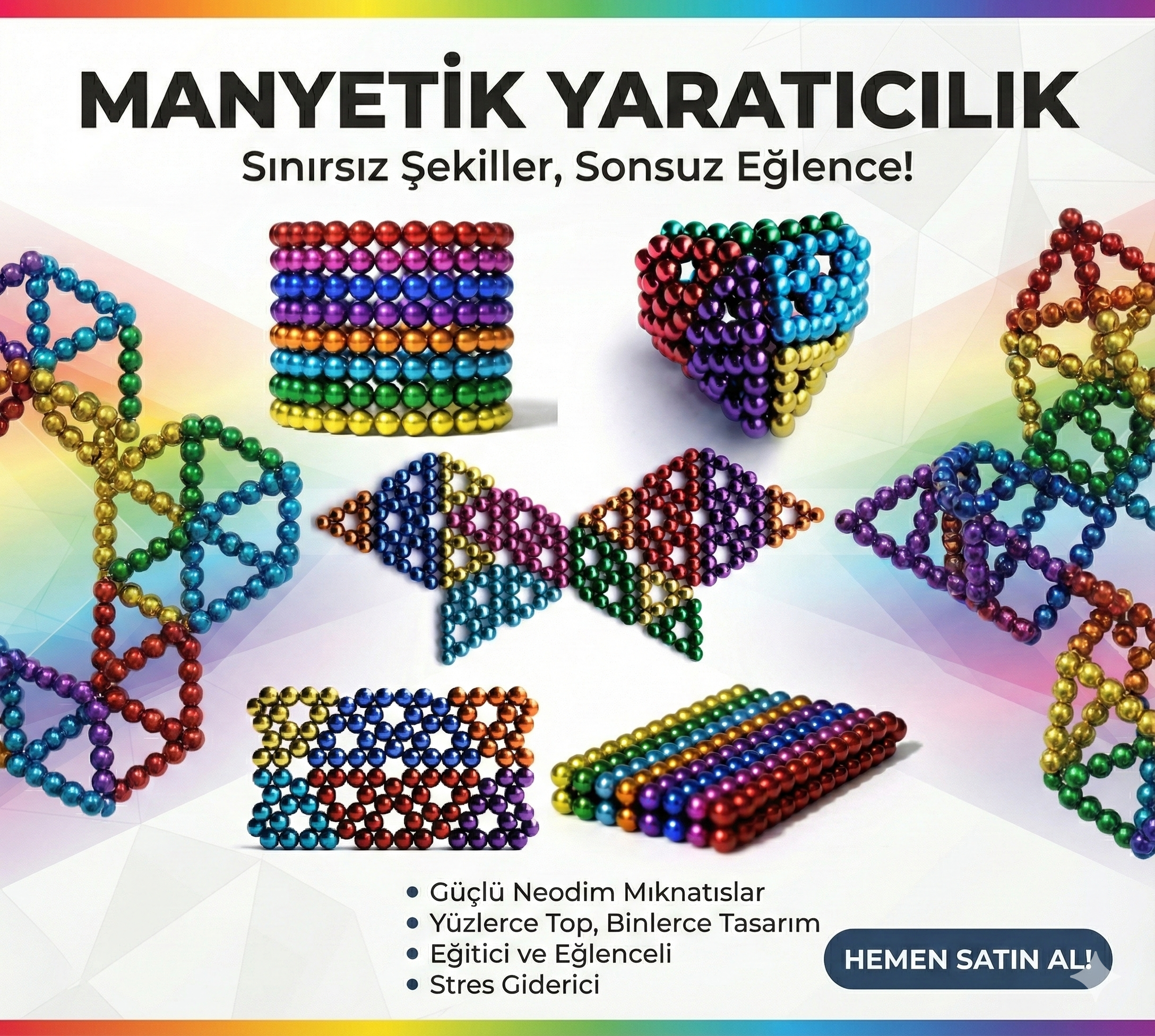 - Neo 6 Renk 5mm 216 Adet Neocube Neodyum Mıknatıs Sihirli manyetik toplar Renkli Toplar NEODYUM MIKNATIS TOPLAR STRES ATIN EĞLENİN ŞEKİLLER OLUŞTURUN DEHANIZI KONUŞTURUN Her Bir Bilye 5 mm Çapındadır. (+- 0.2mm Tolerans Payı Mevcuttur.) 6x6x6 Toplam 216 Bilyeden Oluşmaktadır. Karışık Modelde Stok Durumuna Göre Renkler Farklılık Gösterebilir.