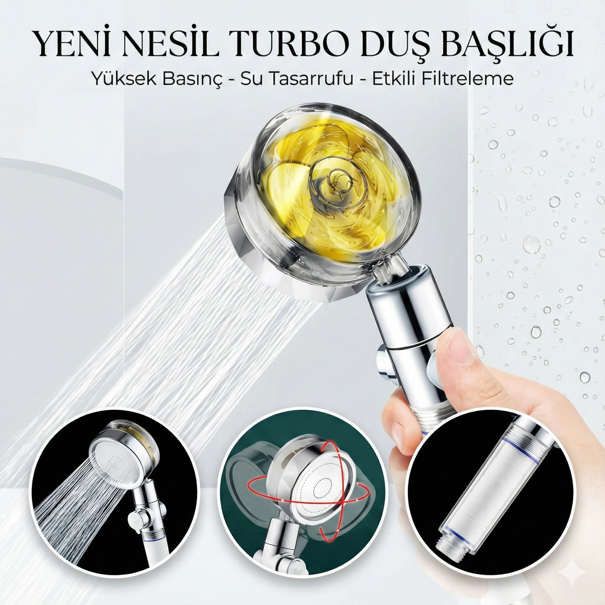 Duş Başlığı Turbo Pervaneli Serinletici Tasarım
