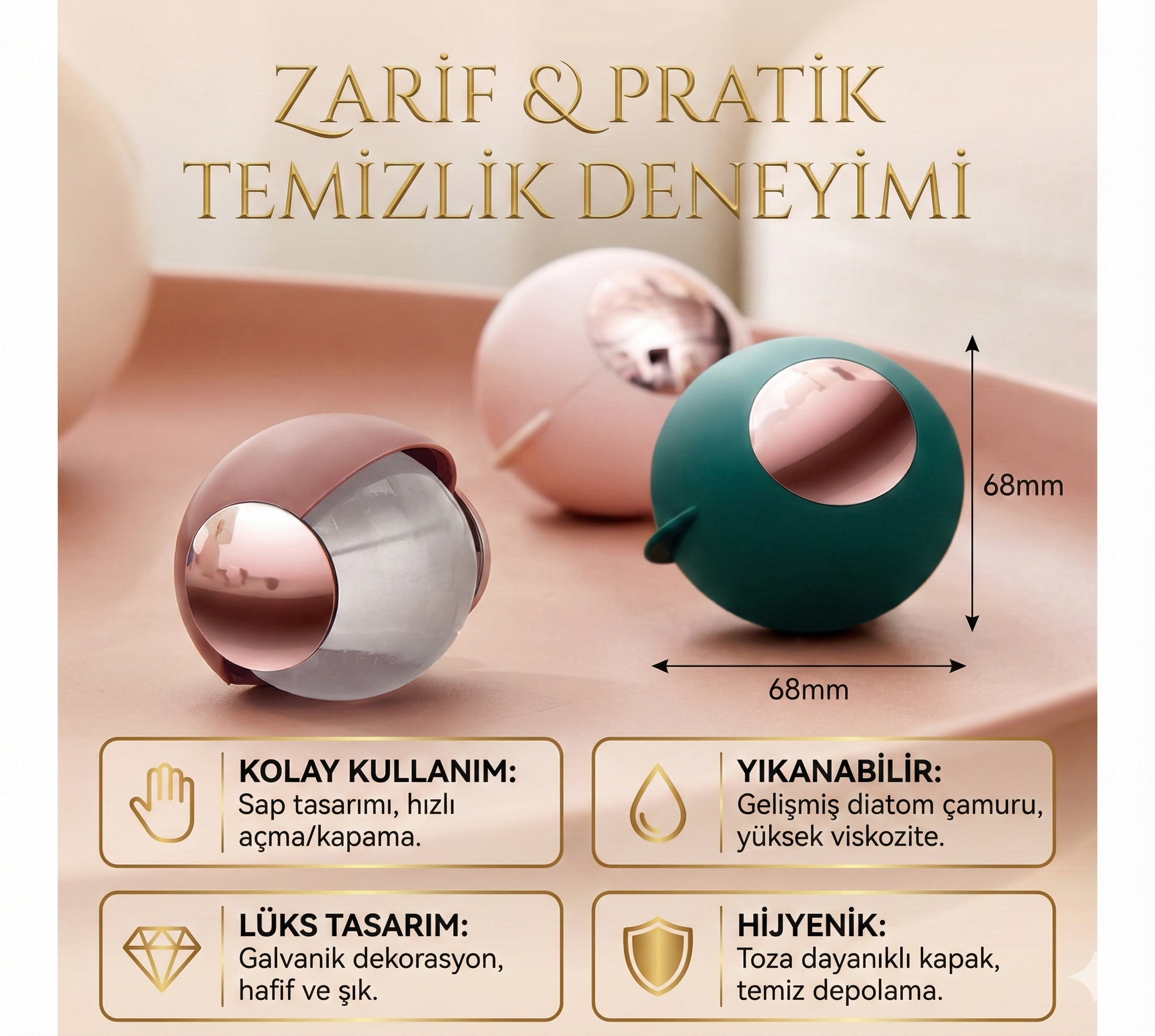 Boyut: Yaklaşık 6,8 x 6,8 x 6,8 cm
