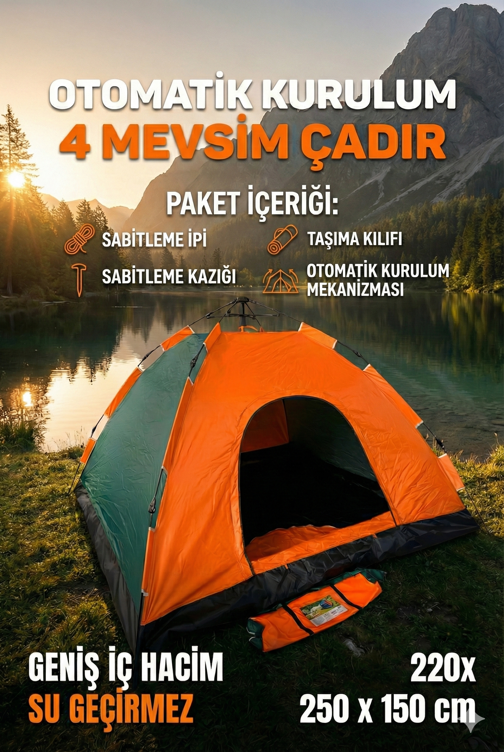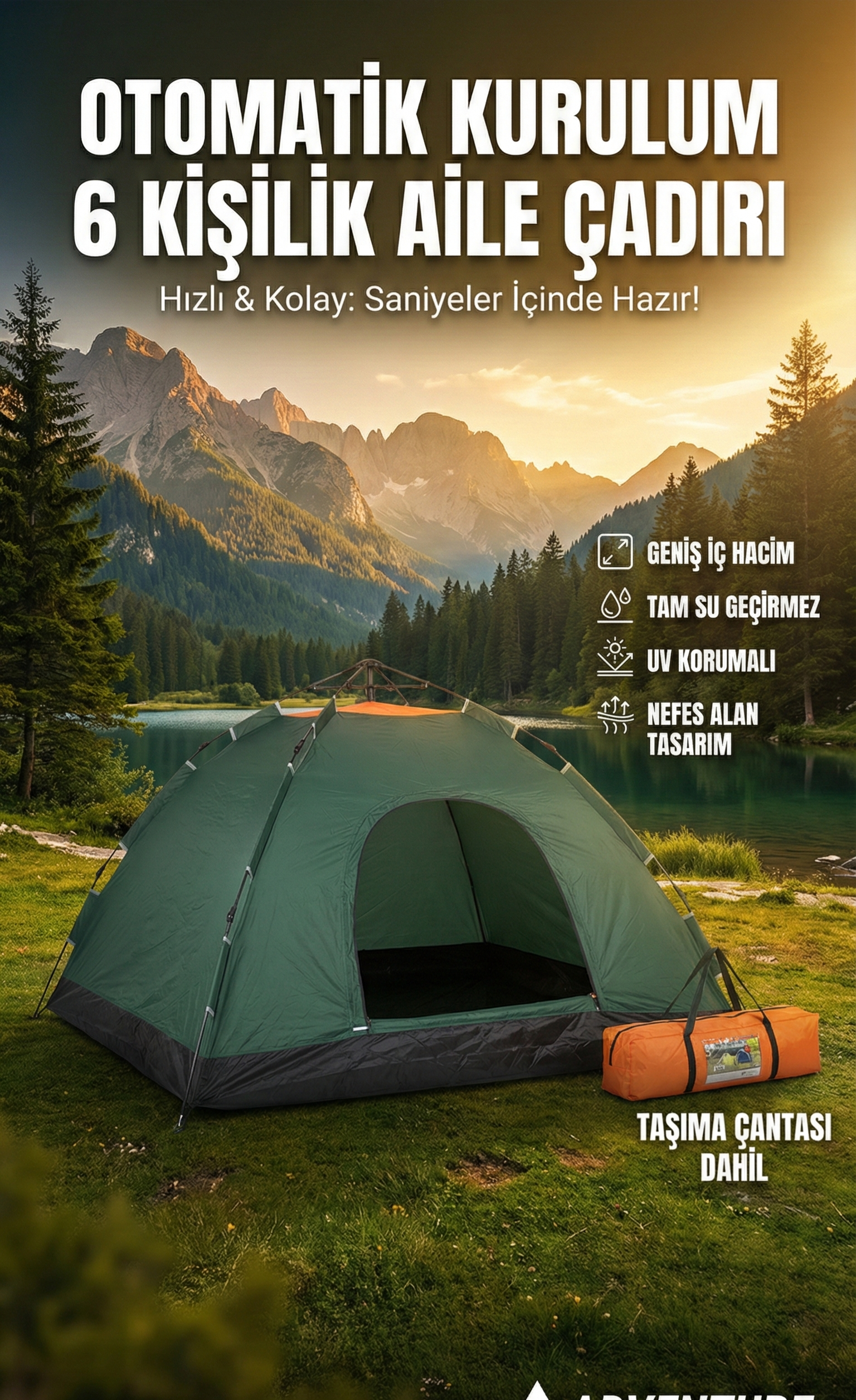 Otomatik Kurulumlu Kamp Çadırı 6 Kişilik (220x250x150)cm