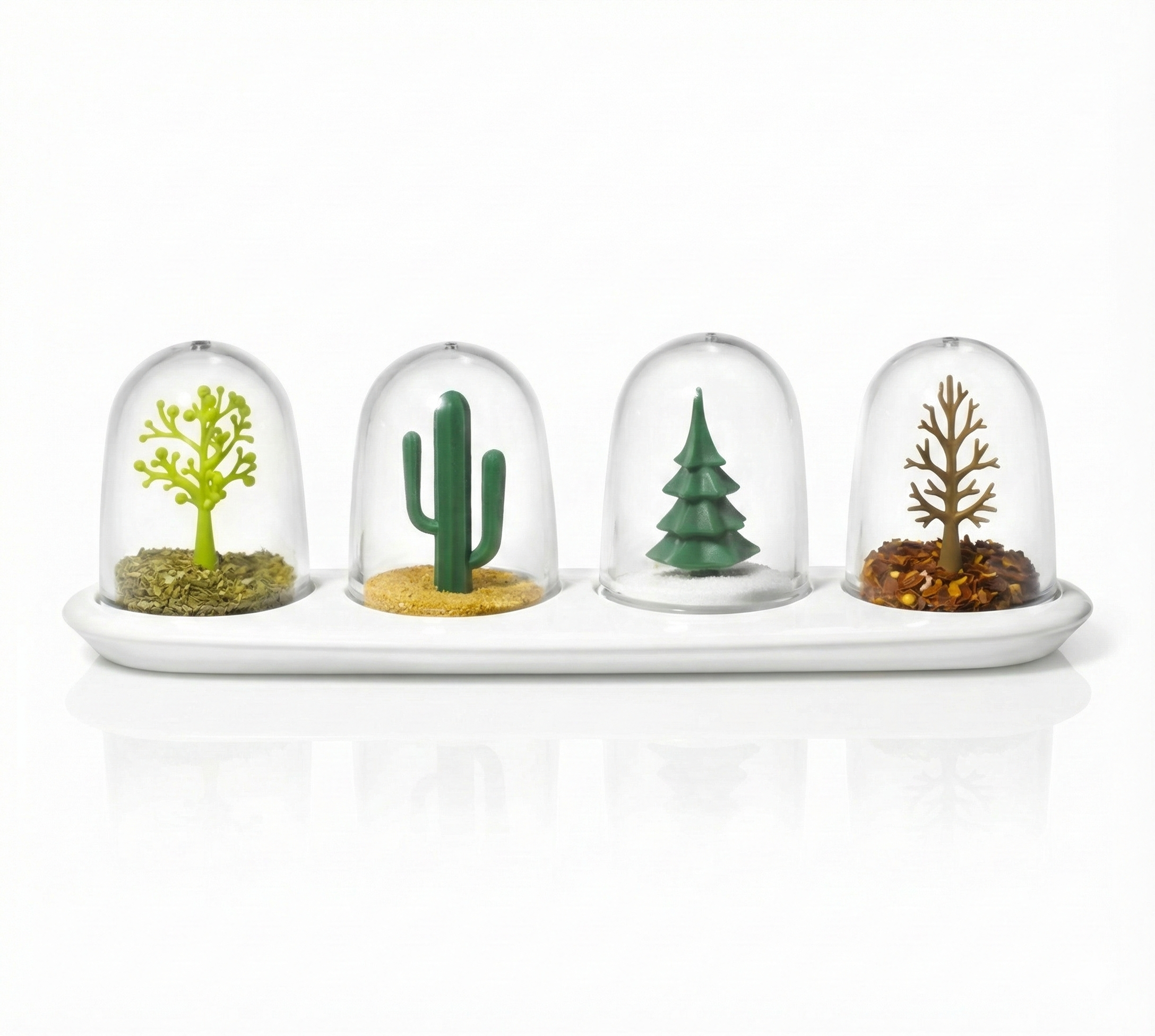 4 mevsimi sofranızda yaşatan harika bir baharatlık. Her birinin içinde uygun mevsime göre ağaç figürleri bulunur ve uygun baharat kullanıldığında gerçekçi bir görüntü elde edilebilir!