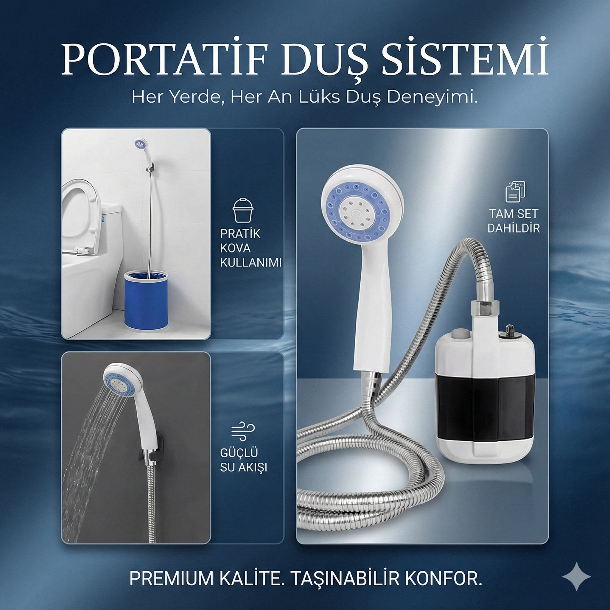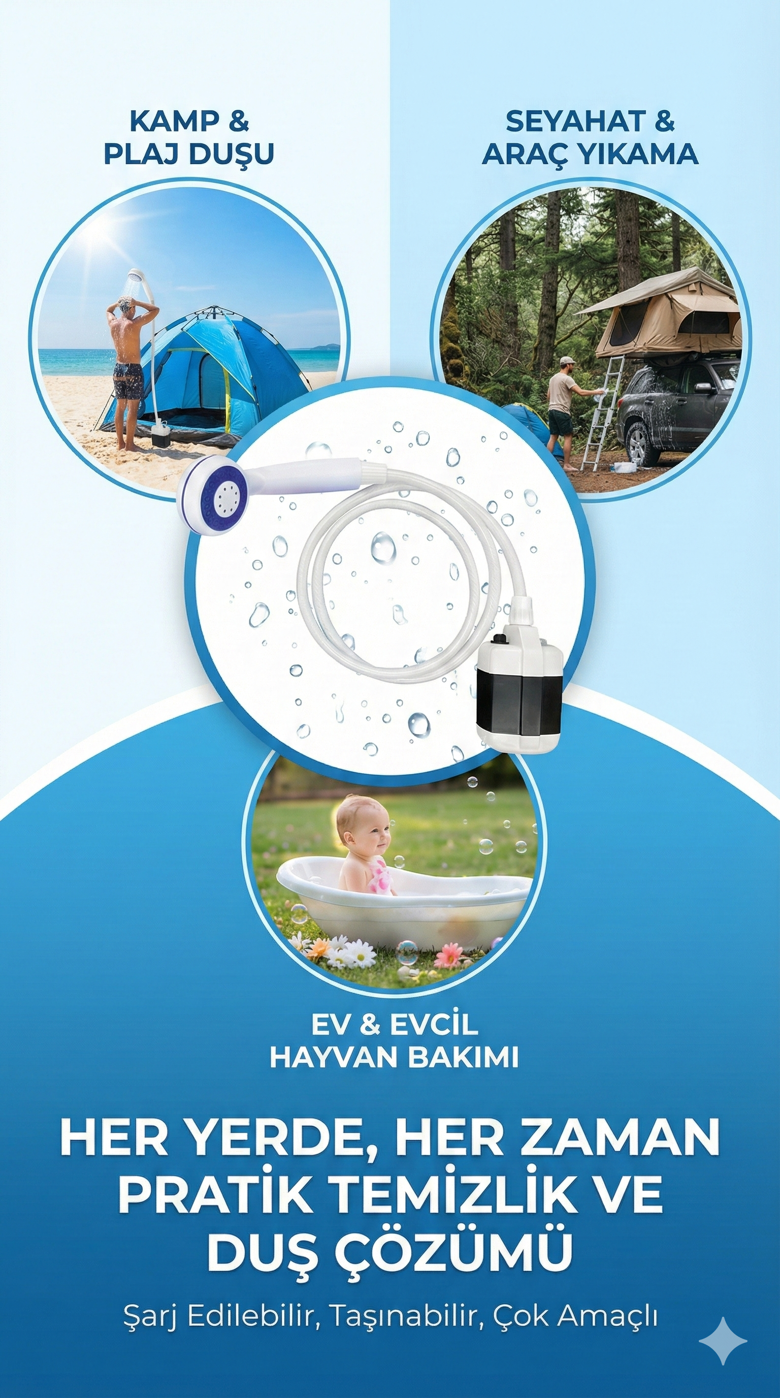 Taşınabilir Şarjlı Seyyar Duş Seti ( Pompa - Hortum - Duş Başlığı )